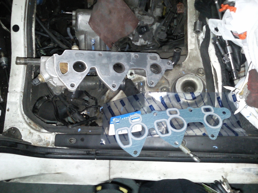 우선 헤드가스켓과 흡기다기관쪽 가스켓 그리고 공구는 10, 12 13, 14 17미리 복스홀과 라쳇트 핸들 그라고 스패너와 고무망치등이 필요합니다 아참 헤드면 연마를 위해서 사포는 400호와 100호 정도 2장도 준비하세요