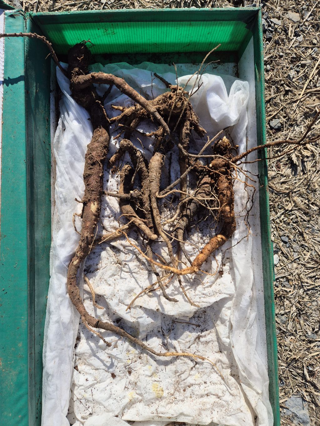 오늘도 최강한파에 산행 떠나 봅니다. 따끈한 해장국 한그릇 먹고나니 몸이 따뜻해 집니다. 그런데 장갑끼고 곡괭이 드니 손이 너무 시려요. 그래도 도라지 싹대 보고 신경 곤두 세우니 금방 손시린것 잊어 버리네요. 그런데 땅이 얼어서 겉의 땅을 제키면 뿌리가 송두리째 잘라져 너무 아쉽습니다. 그래야 2군데 산행하여 몇뿌리 건졌습니다. 너무 추워서 고생좀 했습니다.