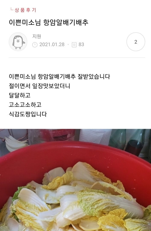 보내드릴게요. 포기가 작은 쌈배추