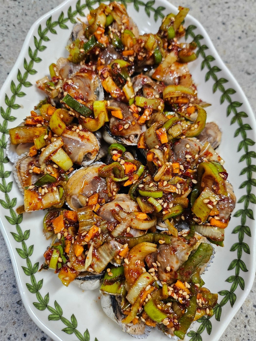 ※ 물1L+소금1큰술 소금물에 약30분~3시간정도 넣어두시면 해감완료!