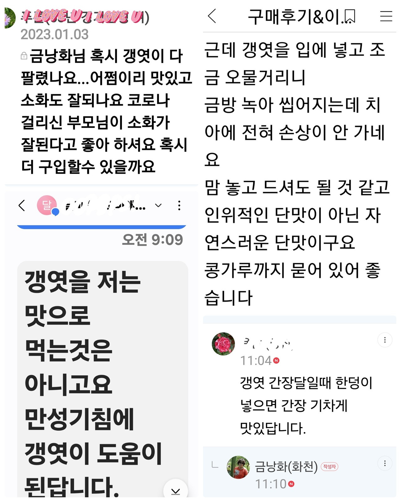 냉동보관후 깬엿은 다시 냉동보관하시고 드실만큼 조금씩 덜어드세요