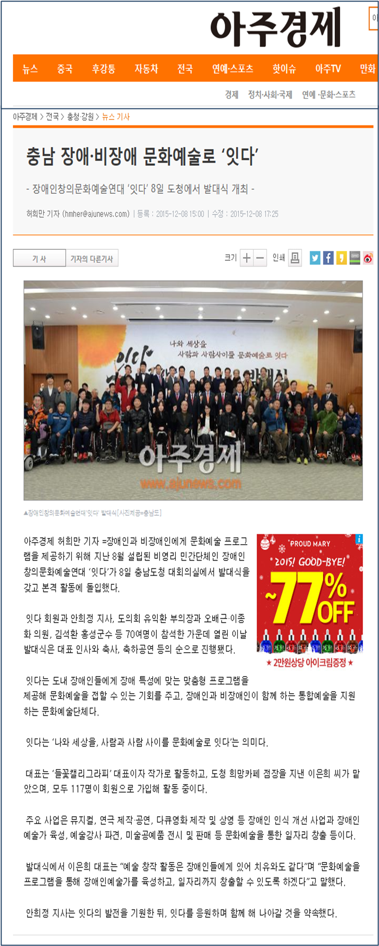 충남장애인창의문화예술연대 '잇다' 발대식 관련기사 02-아주경제신문.png