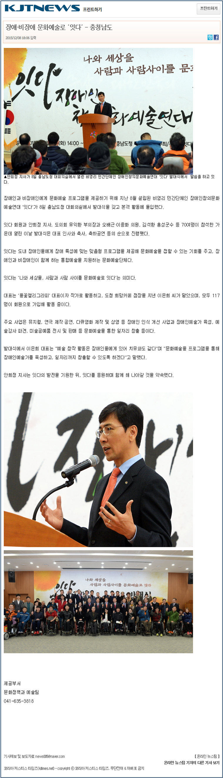 2015년도 12월 8일 충남 장애인창의문화예술연대 '잇다' 발대식이 개최되었습니다. *^^*