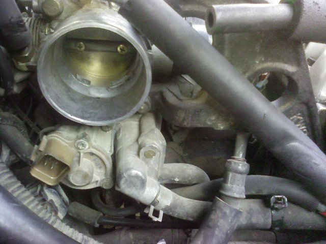 위의 사진에서, 스로틀밸브 아래쪽에, (제가 전선을 빼버린), 십자 나사가 박혀 있는 것이 있는데,