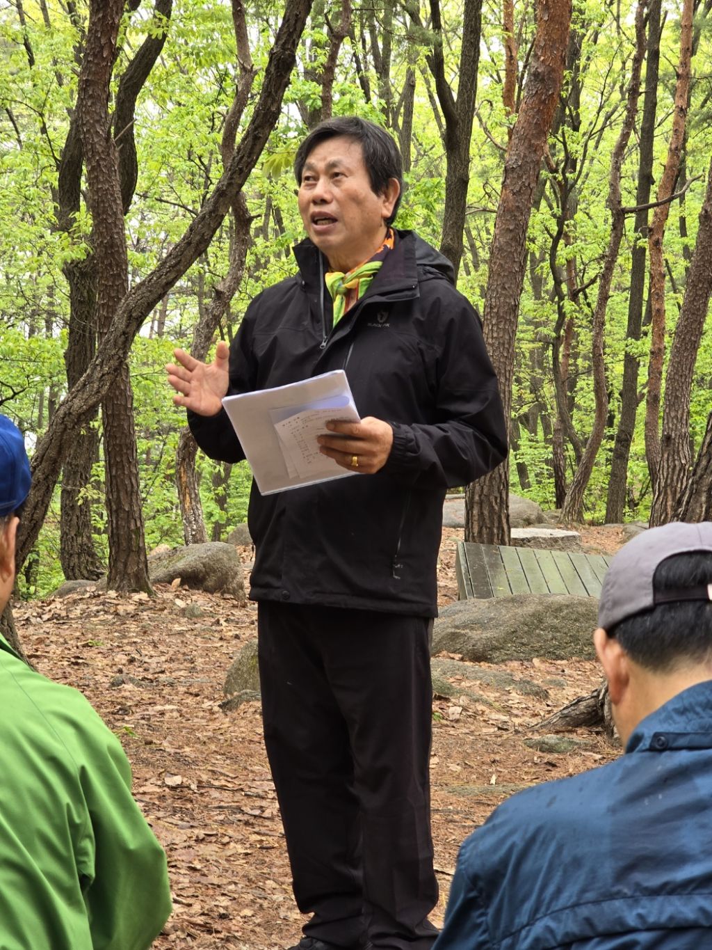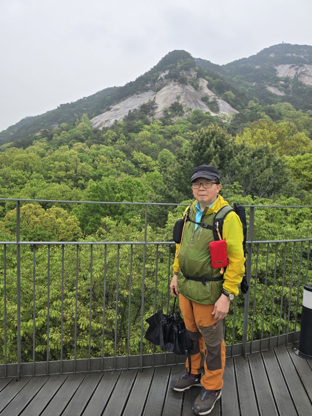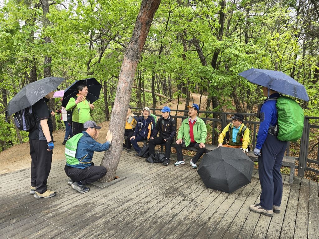 가져온 우산을 받쳐 들고. 산행을 시작했습니다