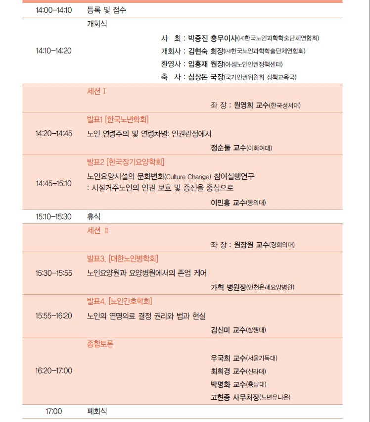 기념 학술대회에서 노인연령주의, 존엄사, 노인요양에 대한 의견을 나누었습니다.