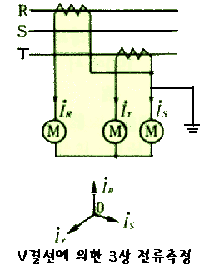 정상분을 얻기 위해서는 보통 CT로 한상에 1대의 CT가 필요하고 V결선에서는 2대로 3상전류를 얻을 수 있다.