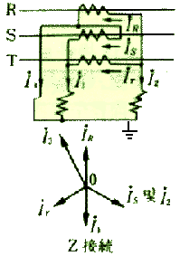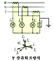 - 가장 일반적인 접속방법으로 잔류회로에는 각상 전류의 벡터합이 흐르는데 영상전류의 3배가 흐르게 된다