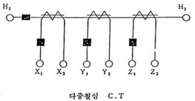 CT 1대 속에 철심이 여러개 있는 형태로 3개의 철심이 있어 3개의 CT 역할을 할 수 있어 경제적이다.