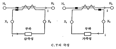 1차전류 방향에 대하여 2차전류의 방향을 나타내는 특성이며 감극성과 가극성 두가지가 있고, 한국에서는 감극성을 표준으로 하고 있다.