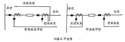 보호용으로 사용되는 CT 선정시 무보호구간이 없고 보호구간이 중첩되도록 그림과 같이 선정하여 사용한다.
