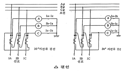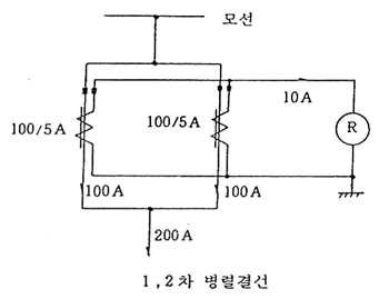 - 주변압기 용량이 10MVAA 이하로 과전류계전방식만 적용할 경우의 변류기 회로 결선방식