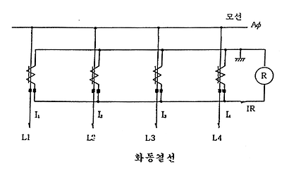 모선보호방식의 CT 화동결선으로 모선에 연결된 병행선로의 총합전류를 얻기 위해서 각 CT의 2차측을 극성에 따라 병렬결선한 것이다. 이때 변류비와 포화특성 등이 일치해야 한다. 그림은 3상중 1상만 표시한 것이다.