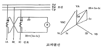 전압보상에 이용되는 LDC회로용 교차결선이다. A상과 C상에 CT를 설치하고 2차극성을 교차하여 합전류 IR을 얻도록된 결선이다.