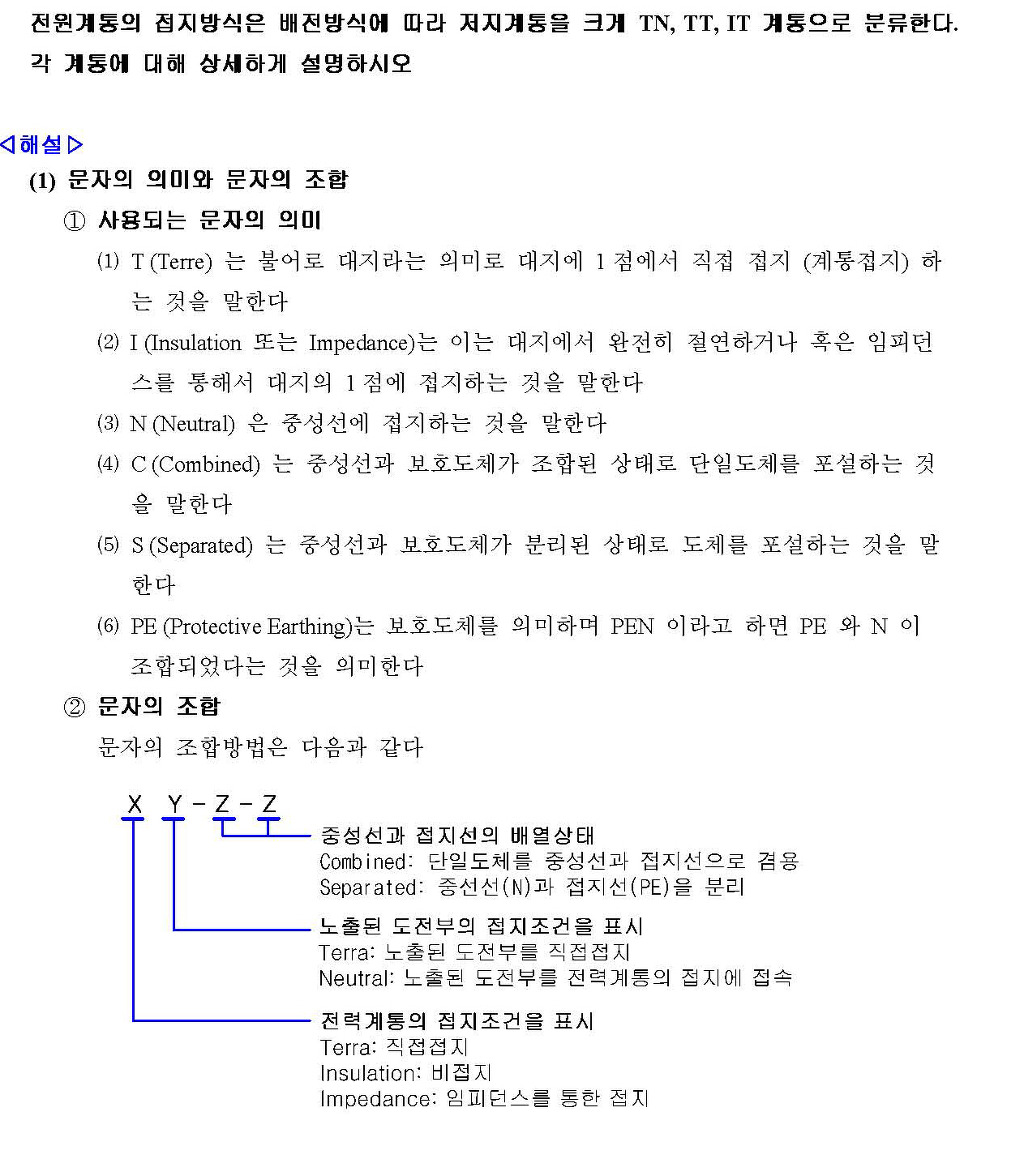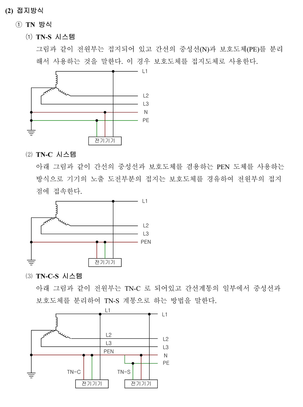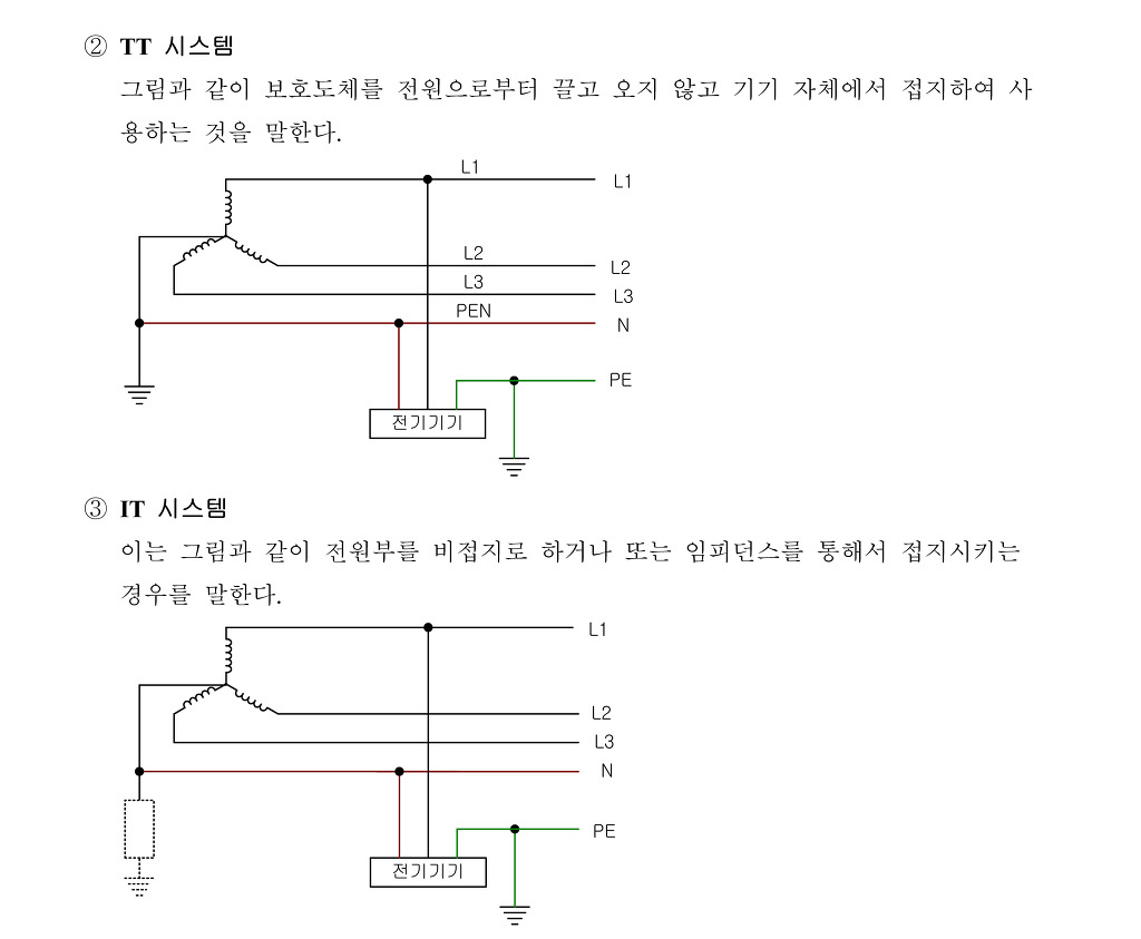 *전력공급측을 계통접지하여 설비의 노출도전성 부분을 계통접지와 전기적으로 독립접지 하눈 방식이다.