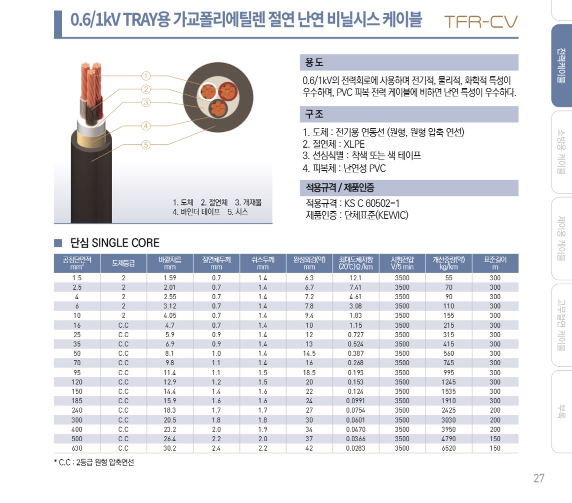TFR-CV 1C*70SQ (XLPE전선) - 금화전선 작성자감전2|작성시간24.05.08|조회수2 목록 댓글 0 글자크기 작게가 글자크기 크게가 TFR-CV 70SQ* 1C (KS C 60502-1, XLPE전선,난연전선,내열온도90도,0.6kV/1kV,2등급연선,Class.2) - 금화케이블 태양전기판매 다음검색 현재 게시글 추가 기능 열기 북마크 공유하기 신고 센터로 신고 댓글 댓글 0 댓글쓰기 댓글 리스트