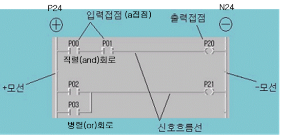 PLC에서의 시퀀스도의 표시는 다음과 같다.