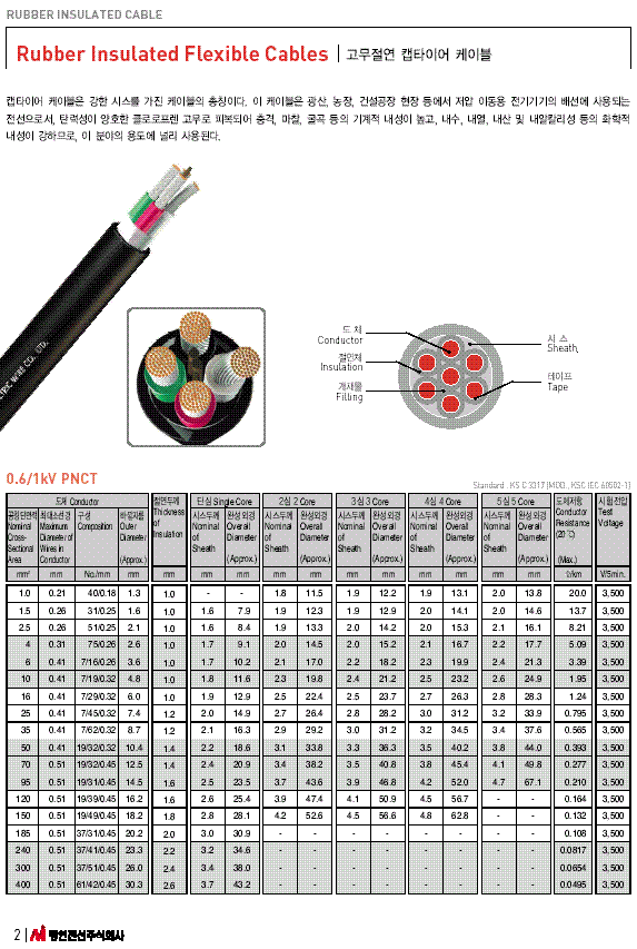 PNCT 전선 (고무절연 캡타이어 케이블) - 명인전선(주) 서울전선(주) 삼원전선(주) : 태양전기판매