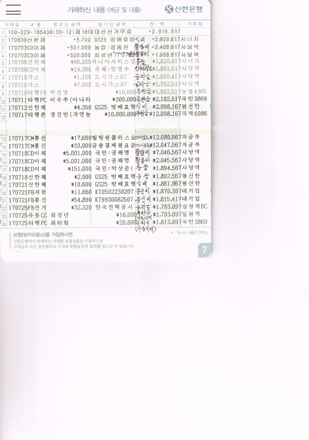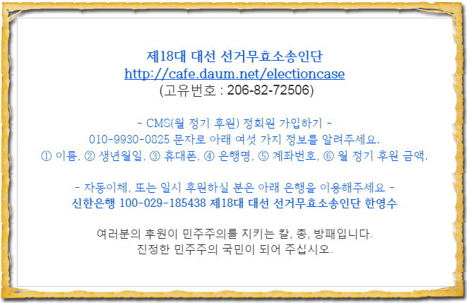 § 2017년 07월 제18대 대선 선거무효소송인단 살림 보고 §