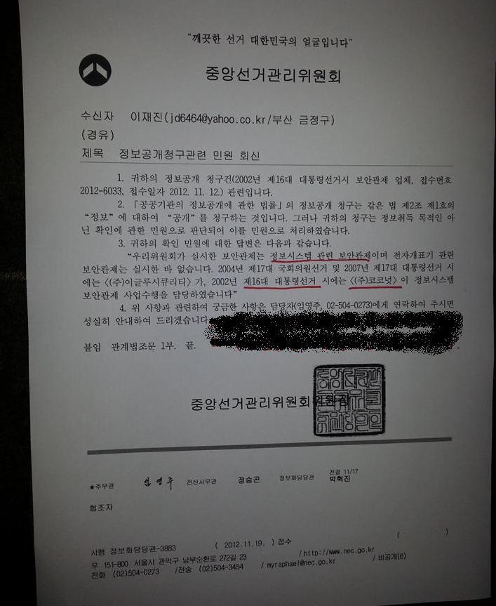16대, 17대 공히 민간인 전문 업체가, 중앙선관위 보안을 담당했다는 것을 알수 있다. 그런데..