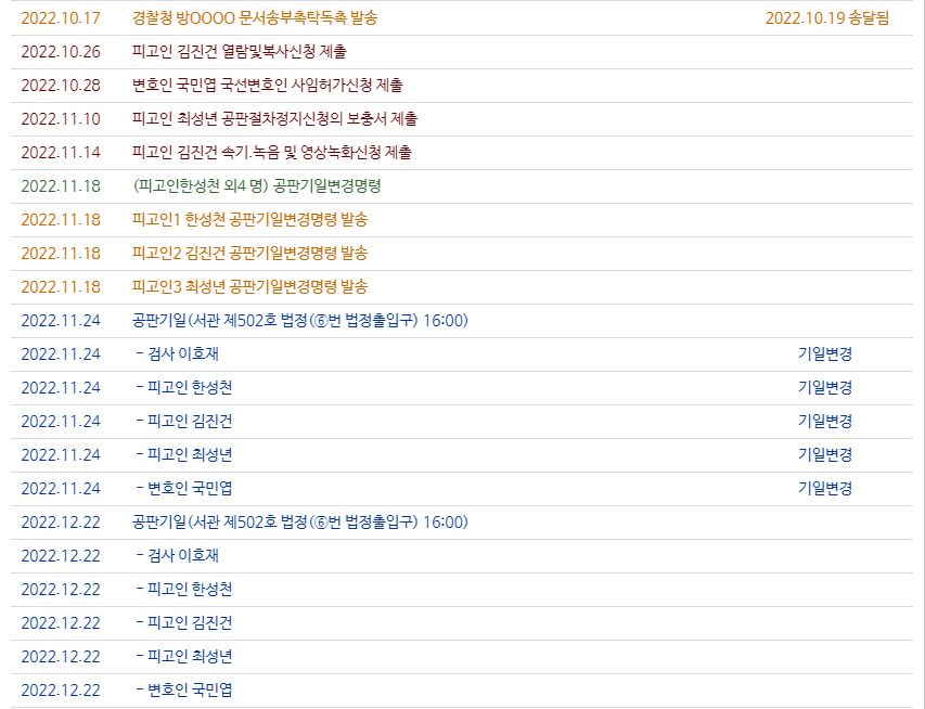 - 사건검색하니까 오늘 11-24에서 12-22로 공판기일 변경되었다.(그림3)