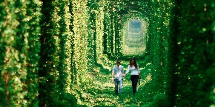 우크라이나 클레벤 마을에는 아치 형태의 싱그러운 나무들로 이뤄진 낭만적이고 몽환적인 터널이 커플들의 발걸음을 사로잡는다. 동화에서 나올 법한 녹색 터널은 무수한 식물들이 둥글게 감싸면서 자연스럽게 형성됐다.
