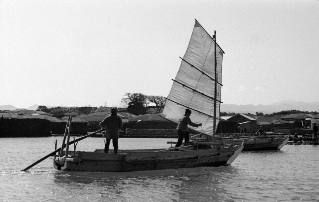 제주의 돛단배 = 1970년대 제주시 조천읍 북촌리 포구 앞의 돛단배.