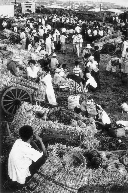 제주의 옛 오일장 = 1967년 7월 제주시 서문시장 남쪽에 위치했던 오일장의 모습.