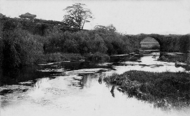 1927년 초 폭우로 무너져 내린 홍예교. 홍예교는 암무지개와