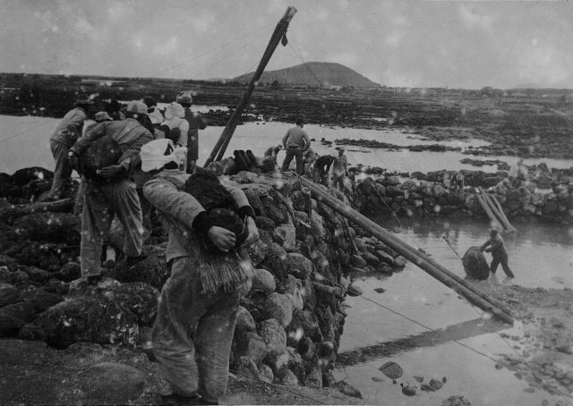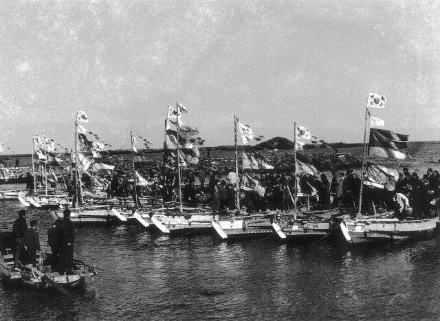 1890년에 촬영한 것으로 추정되는 제주시 산지항의 풍경.