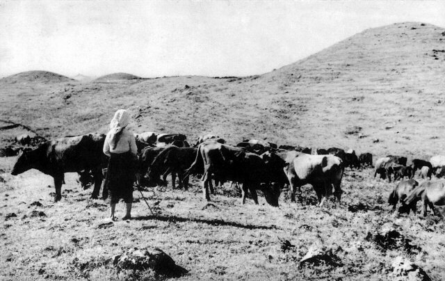 마소 돌보는 제주 소녀 = 1920년-1930년대 사진으로 추정되는 마소를 돌보는 제주 소녀.