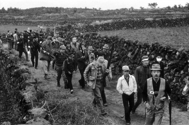 총을 들고 제주의 산간지역으로 향하고 있다. 수렵대회는 한때 외화벌이의 중요한 수단이었다.