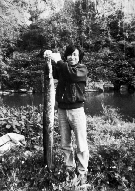 = 1960년대 초 천지연에 서식하는 무태장어를 잡은 모습.