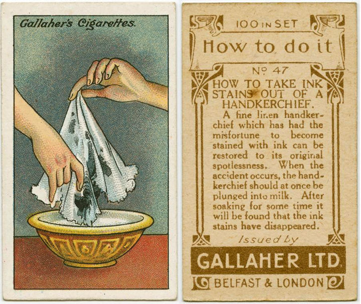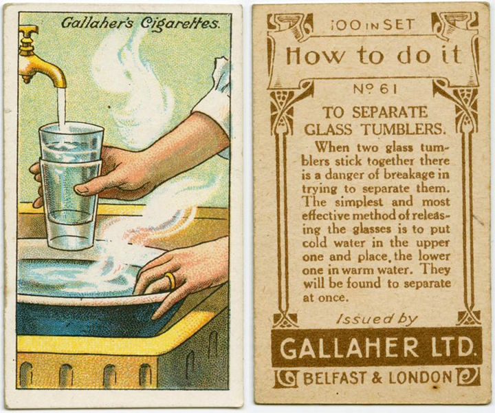 1910년대 세계 최대 담배 회사 규모를 자랑하던 영국 런던의 갈라허(Gallaher Ltd)사는 일상 생활에서 겪는 소소한 문제에 대한 해결 방법과 비상 사태에 대비한 팁을 삽화로 그린 ‘하우투’(How-To)시리즈 카드를 제작했습니다.