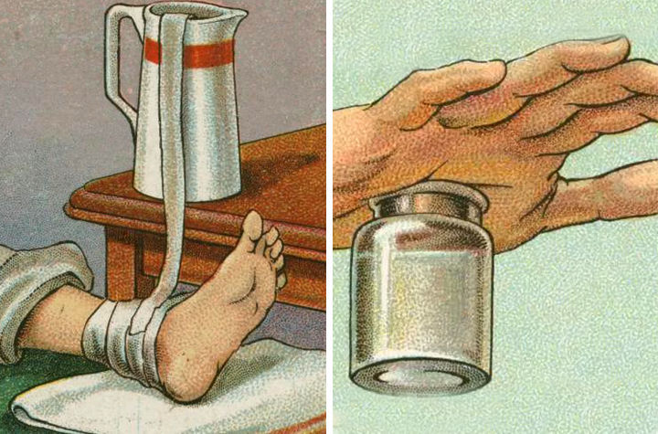 고통 없이 가시를 제거하는 방법으로 일단 입구가 넓은 유리병을 구하고 뜨거운 물을 거의 병 입구까지 담갔다가 병이 달궈지면 가시가 박혀있는 부분을 병 입구로 덮어줍니다.