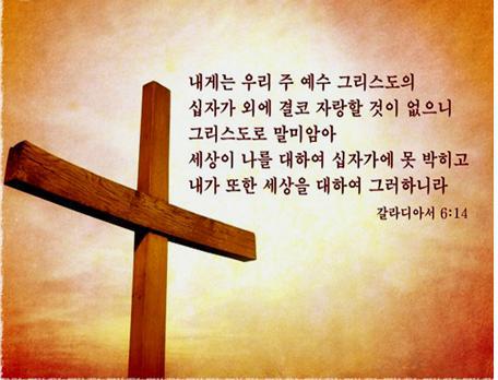 ................................................................... (갈라디아서 6:14) 『그러나 내게는 우리 주 예수 그리스도의 십자가 외에 결코 자랑할 것이 없으니 그리스도로 말미암아 세상이 나를 대하여 십자가에 못 박히고 내가 또한 세상을 대하여 그러하니라.』 .................................................................... |