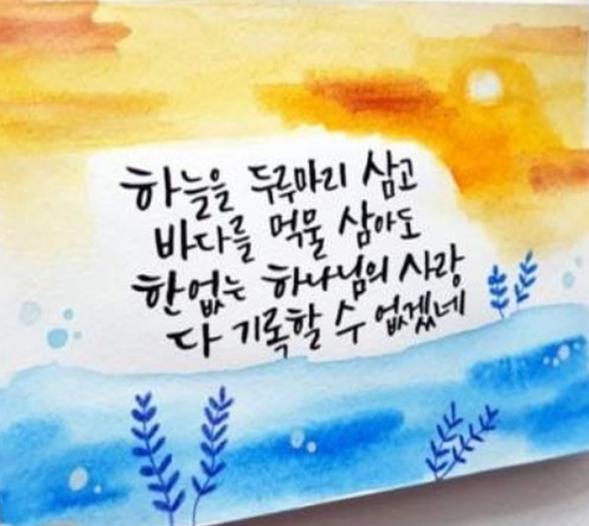 한쪽 벽에 쓰인 찬송가의 가사를 보며