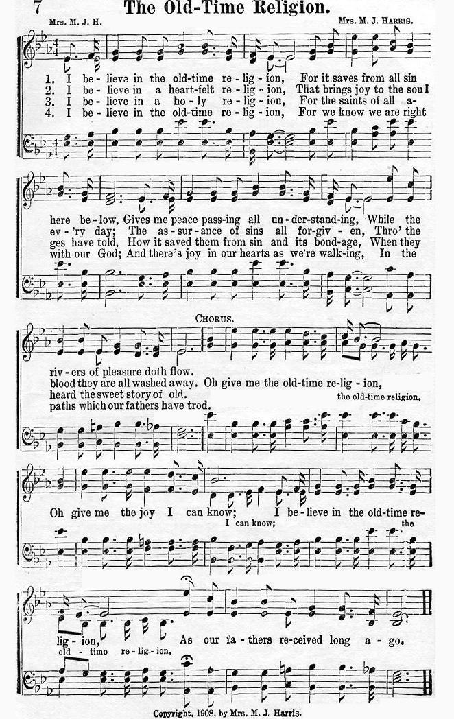 《찬송가, 1962》210장에 처음 채택된 이 찬송은, 일본 홀리네스교단의 나까다 우고(中田羽後, 1896~1974) 목사가, 미국의 마가렛 해리스 부인(Mrs. Margaret Jenkins Harris, 1865~1919)이 작사 · 작곡한 'The Old-Time Religion' 곡조에 맞춰 작사한 성령 은사 찬송, 「메구미 후까끼 미까미요, めぐみふかき みかみよ」를 번역한 것이다.