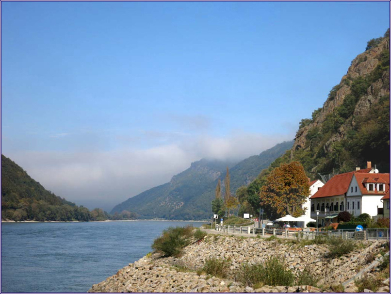 오늘 지나간 강변 도시들 중에 Durnstein과 Spitz가 제일 아름다운 것 같았다. 정확히 얘기를 하면 통과하지는 않았고 강 건너에서 보기만 했다. Krems를 벗어나자 다리를 건너서 Danube 강의 남쪽 강변을 따라서 Melk까지 갔는데 Durnstein과 Spitz는 북쪽 강변에 있었다. 이 두 도시의 경치는 내가 자전거를 타고 간 남쪽 강변에서 보아야 뒷산에 있는 성을 포함한 도시 전경을 제대로 볼 수 있다. 북쪽 강변에서는 도시 속으로 들어가게 되기 때문에 도시 전경을 볼 수 없다. 아마 성도 보이지 않았을 것 같다.