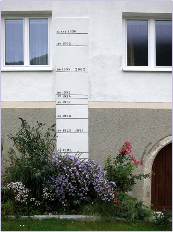 큰 장마 때 불어난 Danube 강물의 수위를 표시해 놓았다, 제일 높았을 때가 1830년으로 보인다