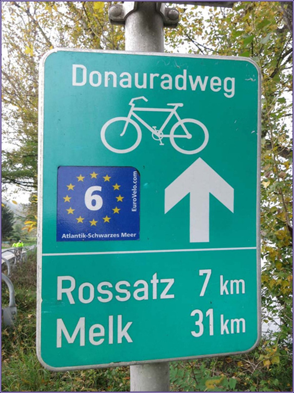 남쪽 강변 내가 달린 자전거 길은 EuroVello 6라는 이름의 자전거 길이었는데 내가 그동안 유럽에서 달린 자전거 길 중에 제일 잘 되어있는 자전거 길이었다. 표지판도 단연 제일이었다. 북쪽 강변에는 자전거 길이 없을 것 같다. 자전거 길이 강 양쪽에 모두 있을 필요가 없기 때문이다. 북쪽 강변에도 자전거 길이 있고 오늘 그 길을 달렸더라면 남쪽 강변에 EuroVello 6 같은 좋은 자전거 길이 있다는 것을 모르고 Melk까지 갔을 것이다.