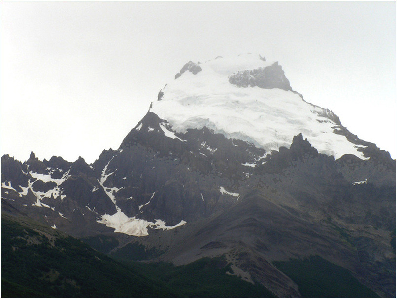 오후 1시까지 기다려도 날씨가 더 나아지지 않는다. 할 수 없이 나 혼자 갔다 오기로 하고 떠났다. Hostel 문을 나설 땐 비바람이 몹시 쳤는데 일단 산으로 들어가니 비바람이 거의 없었다. 그러고 보니 Hostel이 있는 곳이 바람골인 모양이다. 안내판에 Torre 산을 볼 수 있는 전망대까지 1시간 반 거리라고 쓰여 있었는데 빨리 걸었는지 한 시간 만에 당도했다. 역시 구름에 가려서 산이 안 보인다. 혹시나 날씨가 좋아질까 하고 전망대에서 한 시간 동안 기다렸으나 허사였다. 그 동안에 등산객 수십 명이 다녀갔다. 구름 사이로 봉우리 하나와 빙하는 보이는데 Torre 산봉우리는 일부만 보인다. 할 수 없이 보이는 것만 사진을 찍고 내려오기 시작했다.