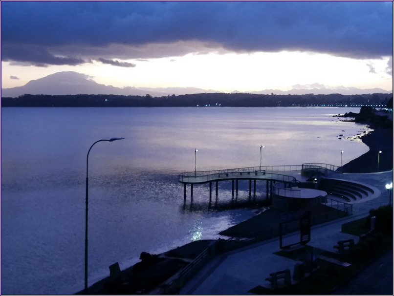이른 아침 Puerto Varas 숙소 방에서 내려다본 호수경치, 오늘은 날씨가 나빴다