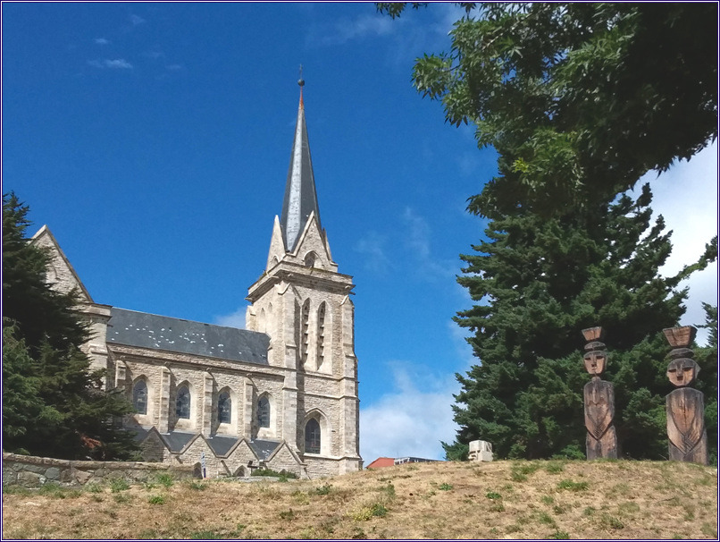 교회 옆 목상은 이 지역 원주민들의 작품들 같다