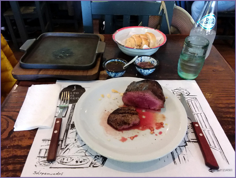 오후 2시경에 다시 나가서 parrilla 점심 식사를 했다. Parrilla는 아르헨티나의 국민 소고기 음식이다. 구글지도로 중앙광장 부근에서 제일 잘한다는 parrilla 음식점에 찾아가서 parrilla 음식을 먹었다. 그런데 2004년에 먹었던 것만 못한 것 같다. 맛도 그렇고 음식점 분위기도 그렇다. 2004년에는 아르헨티나 여러 도시, 특히 Cordova와 Mendoza에서, 맛있고 푸짐하게 먹었었는데 오늘은 그저 미국 스테이크 음식점에서 스테이크를 먹은 기분이다. 전혀 옛날에 느꼈던 아르헨티나의 특이한 소고기 맛과 분위기가 아니다. Parrilla 음식은 이곳에 머무는 동안에 또 먹을 것 같지 않다.