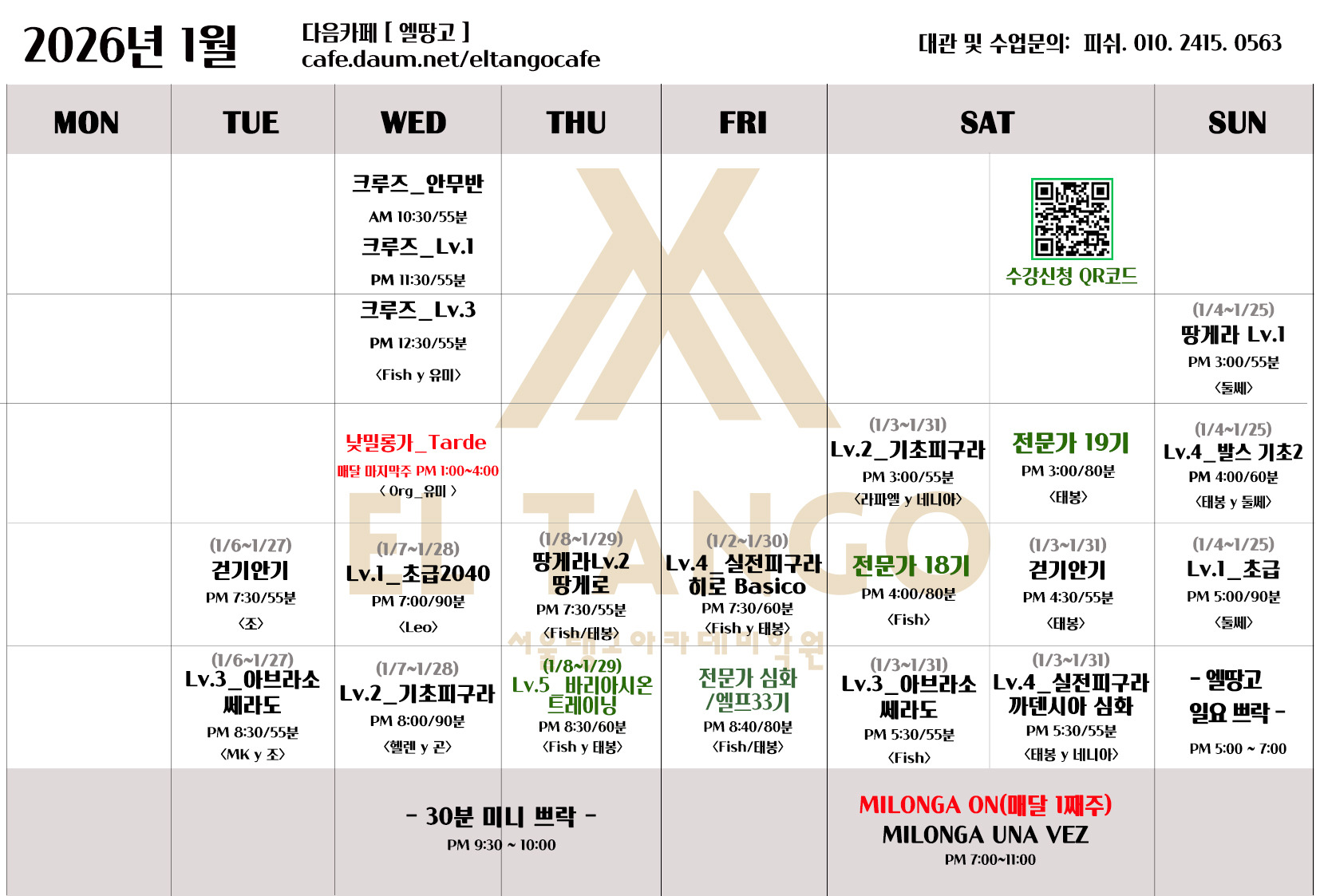 [ 2026년 서울탱고아카데미_엘땅고 1월 수강신청 ]