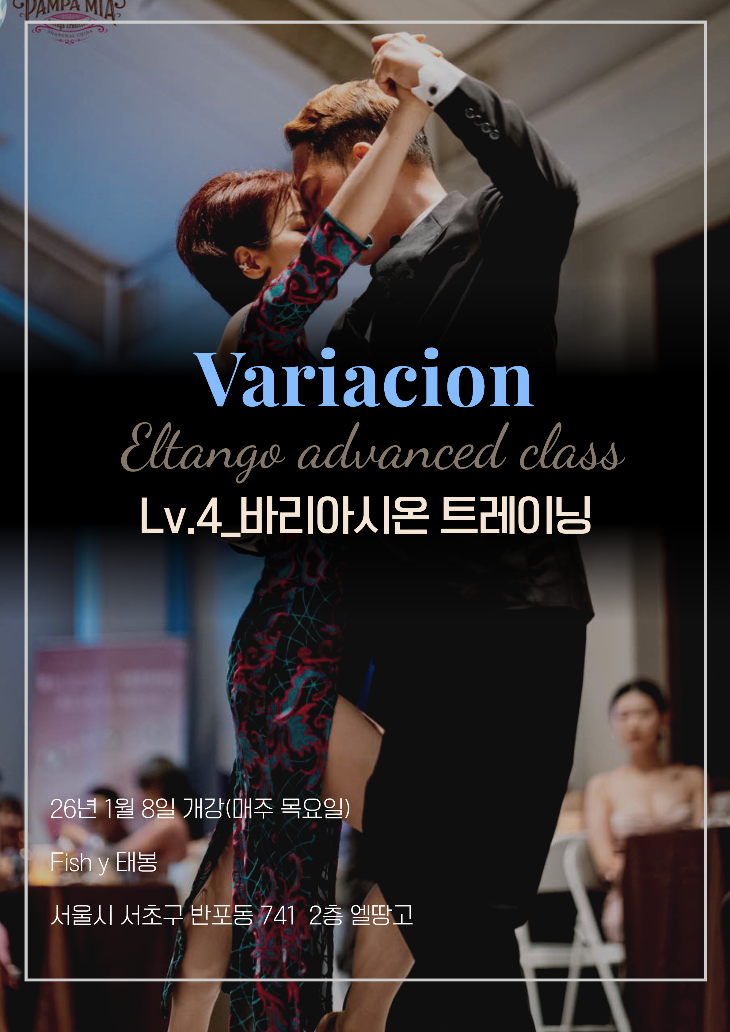 바리아시온 수업은 8주 과정으로 이루어지며 파트너로도 수강하실 수 있고 개별로 수강하실 수 있습니다.