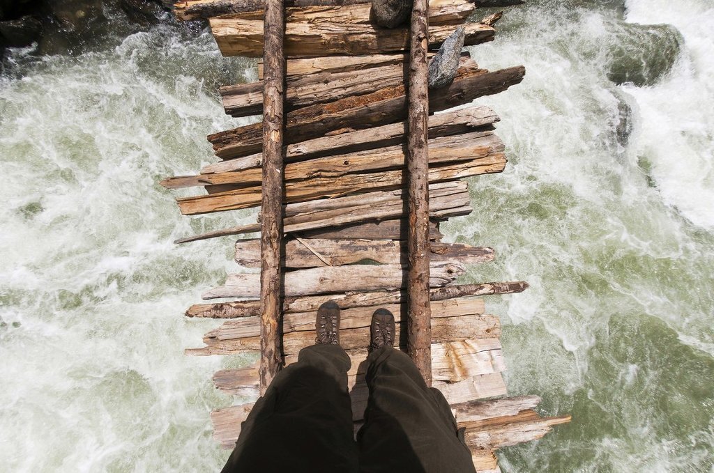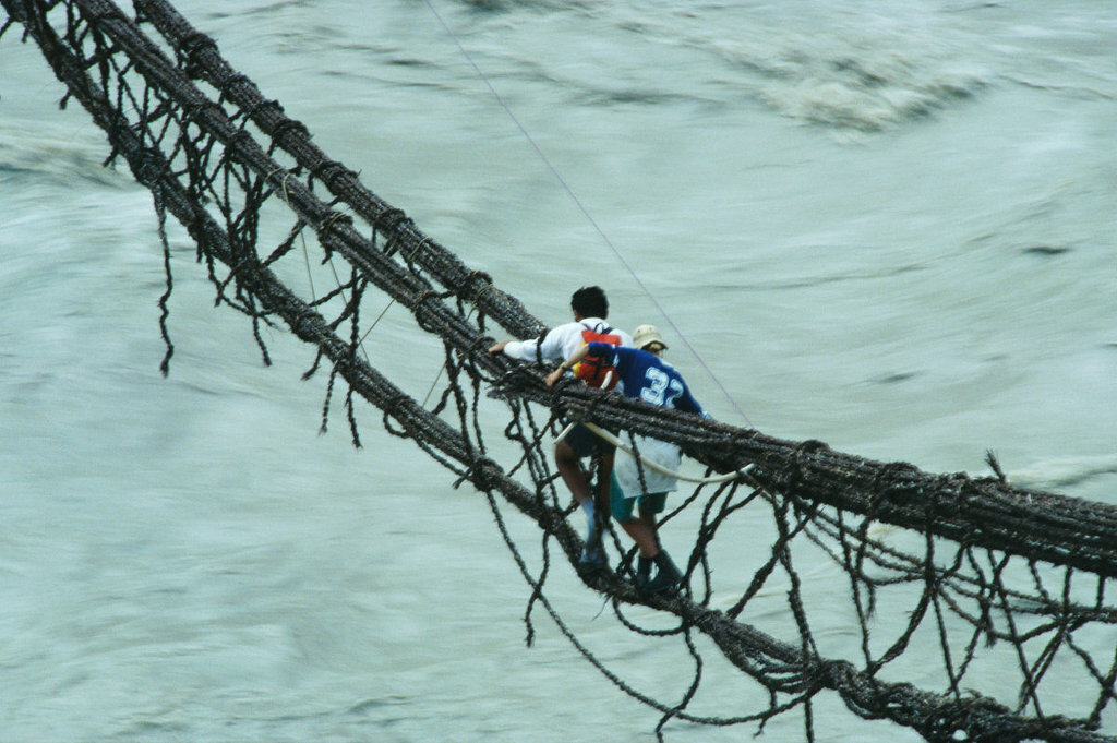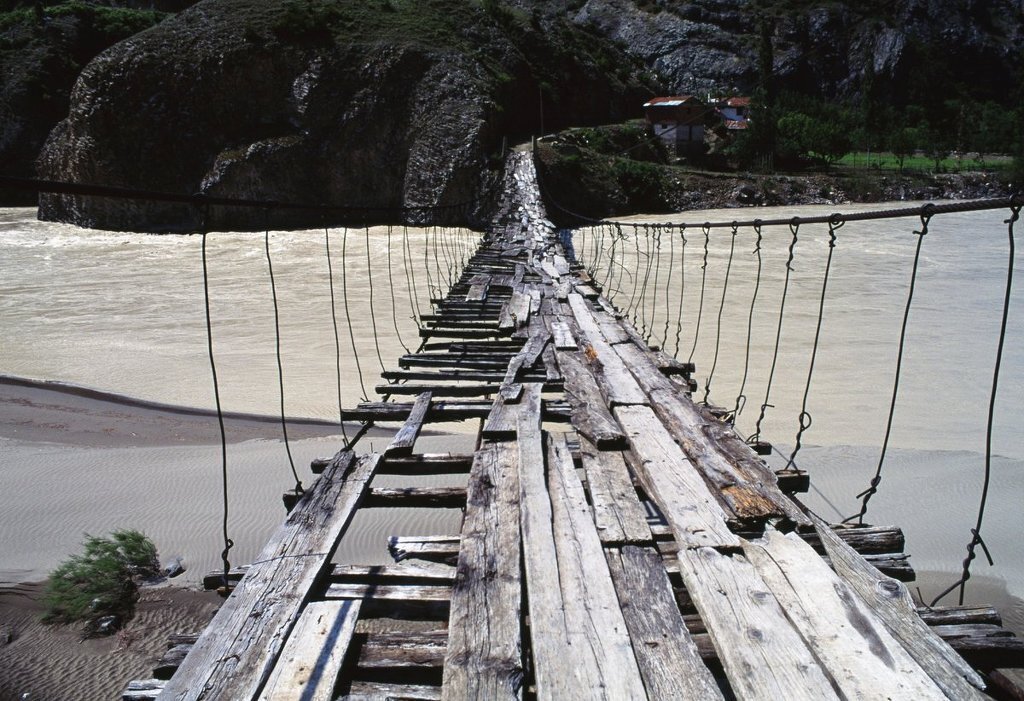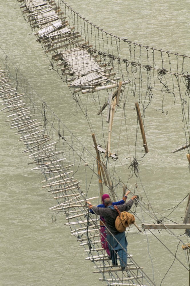 Swinging bridges near Passu, Bojal, Pakistan.