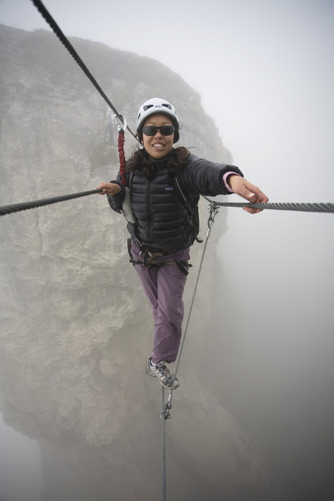 "Le Roc du Vent" Via Ferrata in the French Alps in Areche-Beaufort, Savoie, France.