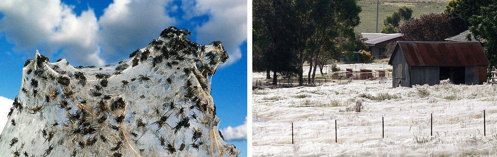 그리고 평원에 정착한 수백만 마리의 거미들은 그 곳을 온통 거미줄로 뒤덮었습니다.